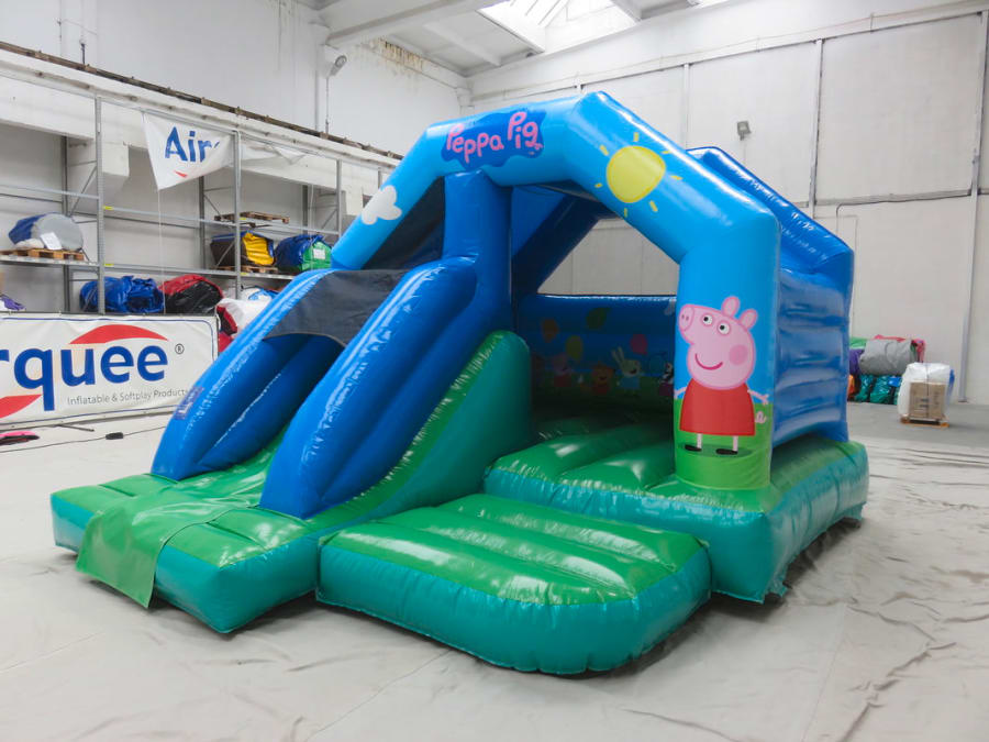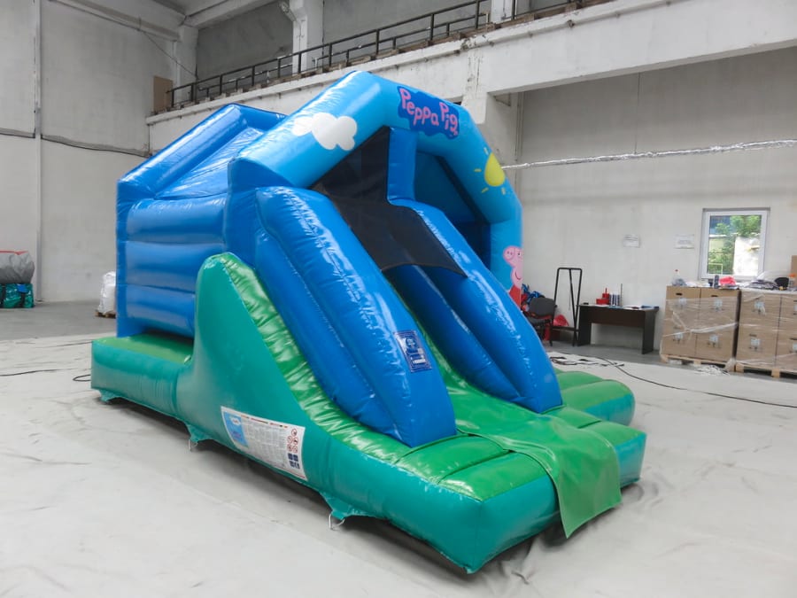 The brand new range of Peppa Pig inflatables was announced around June 2020 and we immediately placed an order for a number of products in this theme. This particular product is a bouncy castle and slide combo and these inflatables are always popular with our fantastic customers.