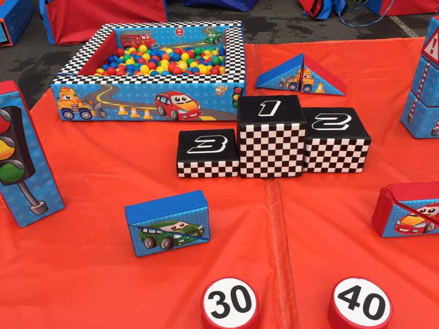 The soft play shapes and pieces feature fantastic artwork of cars, speed limits, road signs etc. There are building blocks, round shapes and a small ball pool!
