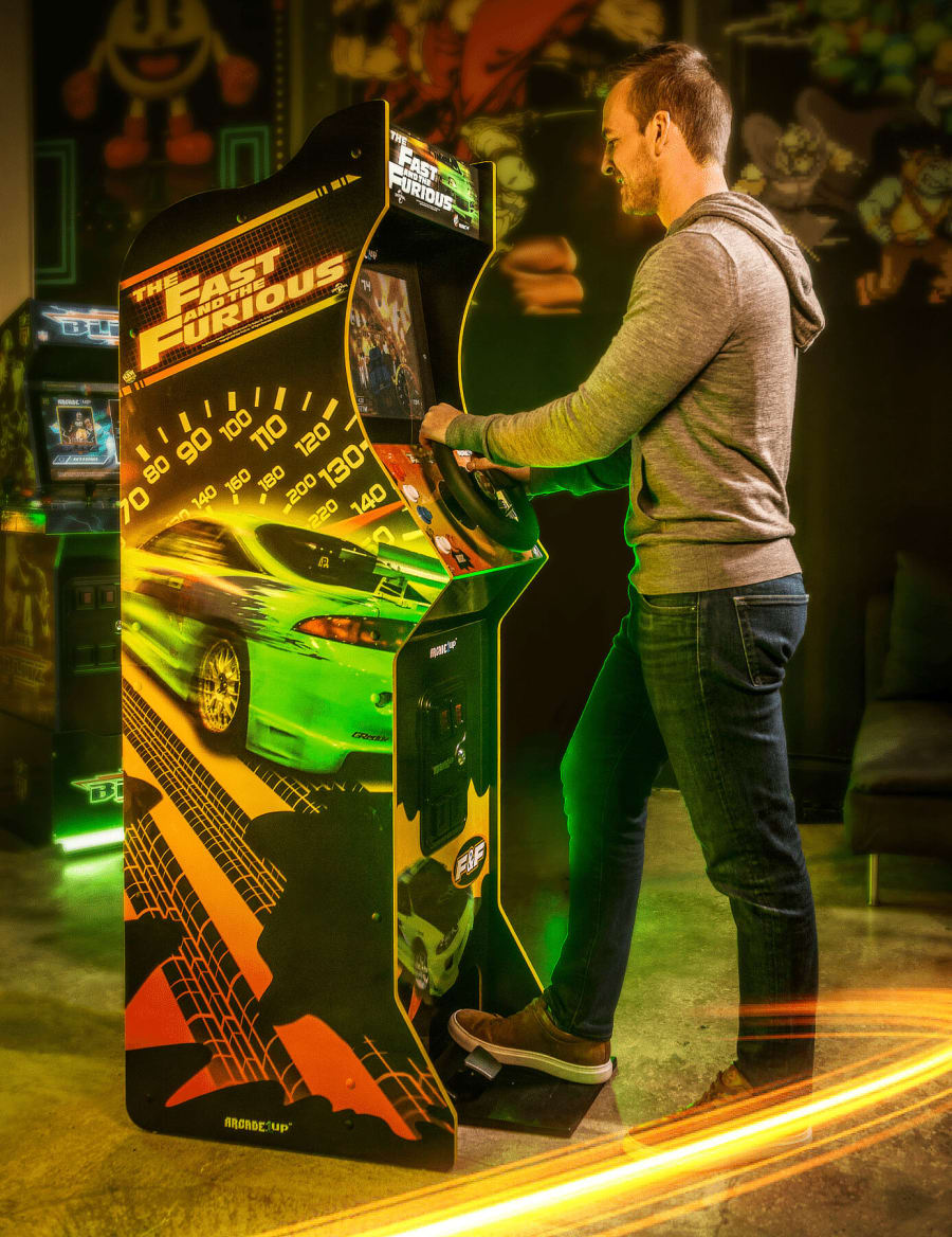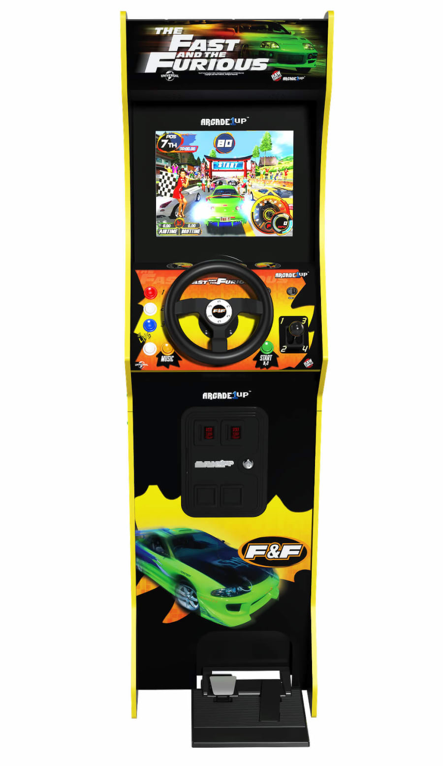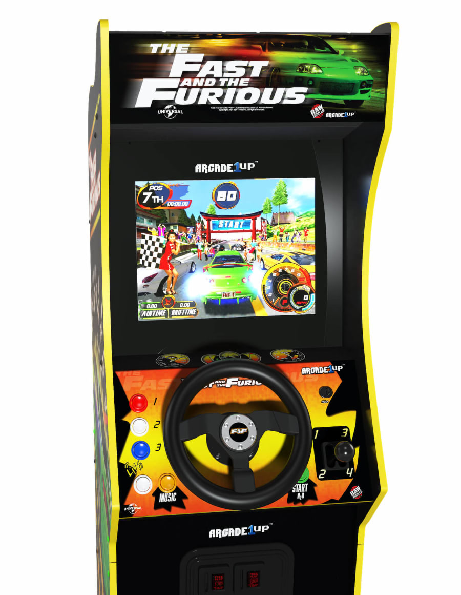 Wanna live your life a quarter-mile at a time? Double de-clutch and hit the NOS with Arcade1Up's all-new The Fast & The Furious Deluxe arcade machine! Drive the craziest street racing cars in movie history on challenging courses based on real locations. And go up against the most competitive adrenaline junkies from the early films in the franchise.