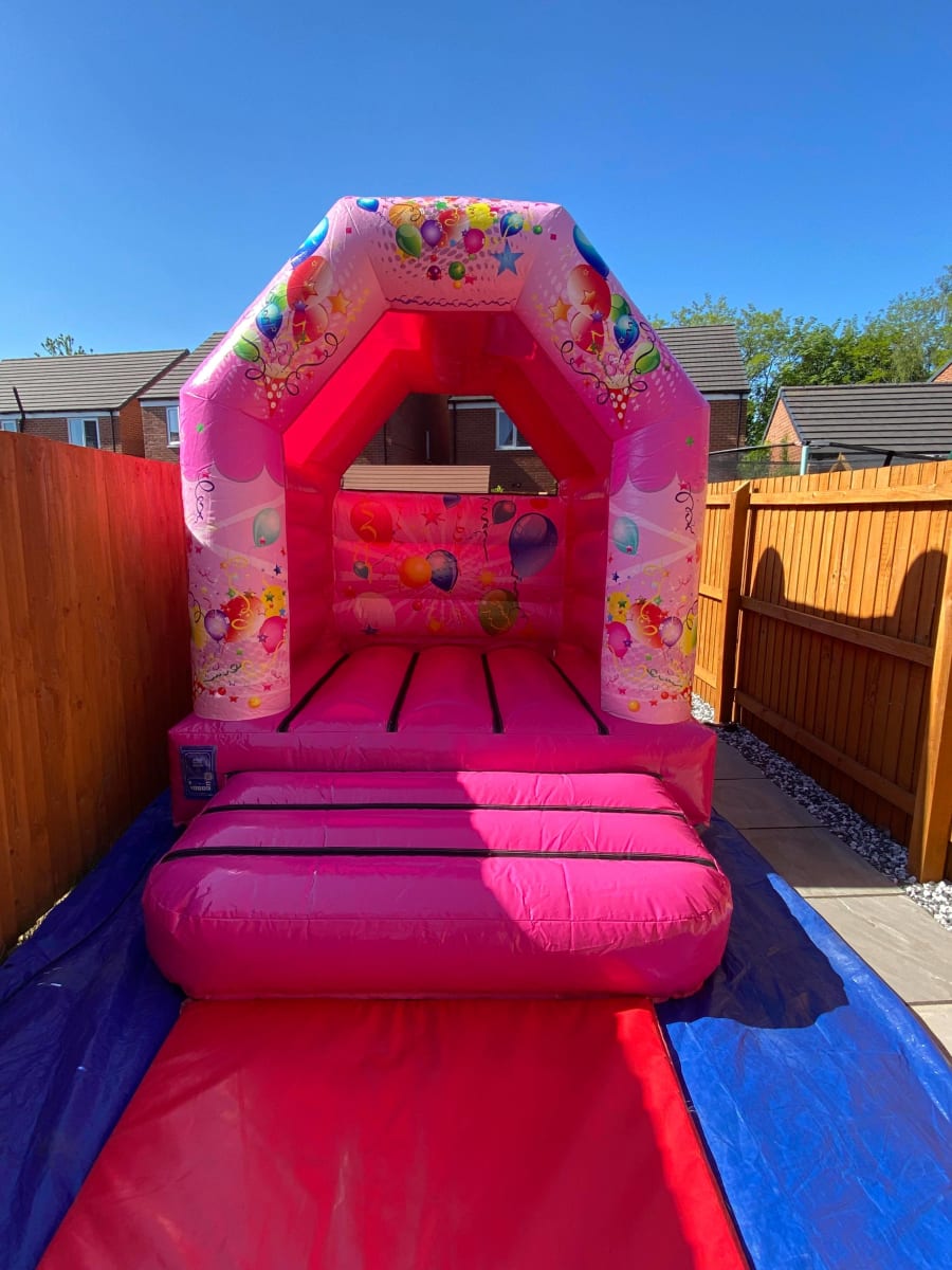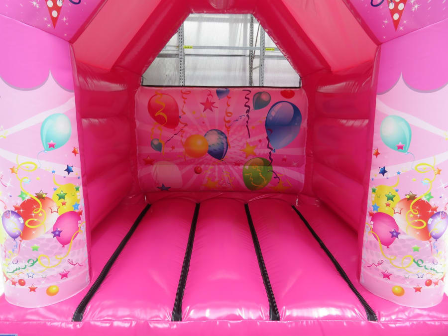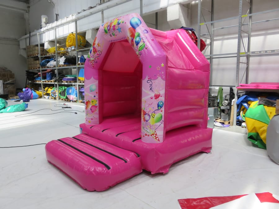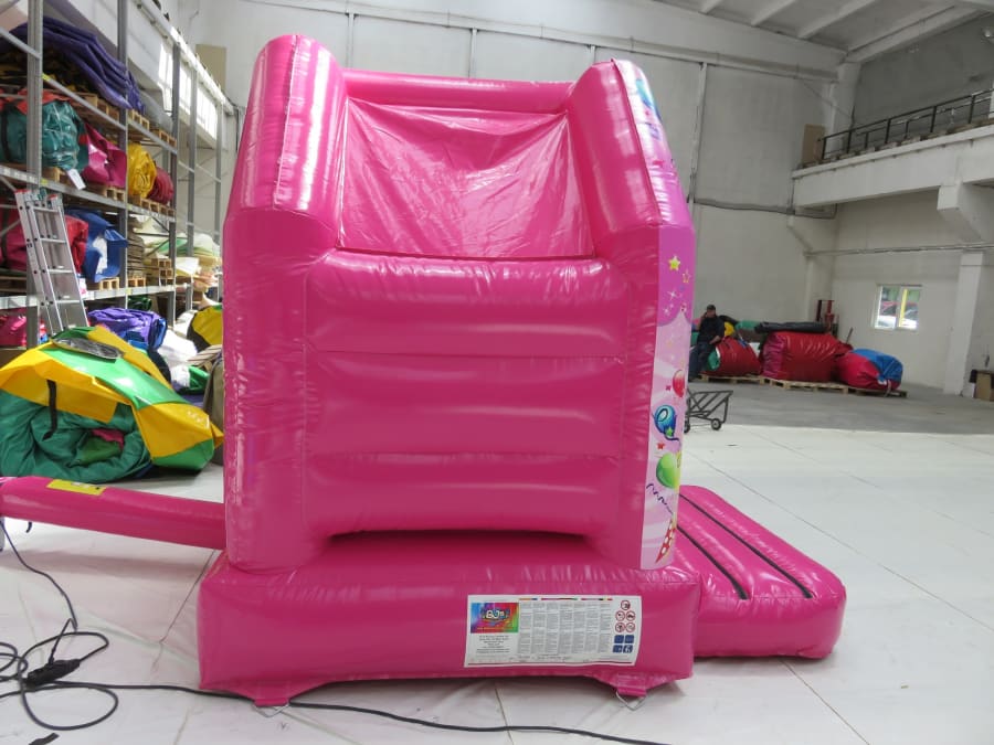 This particular unit has been designed in a bright pink colour scheme and features super digitally printed artwork on the back wall, top beam and side pillars of the bouncy castle. Designed and built in accordance with the UK and EU inflatable safety standard (BS EN14960), you can rest assured this inflatable bouncy castle is safe for children and guests to play on.