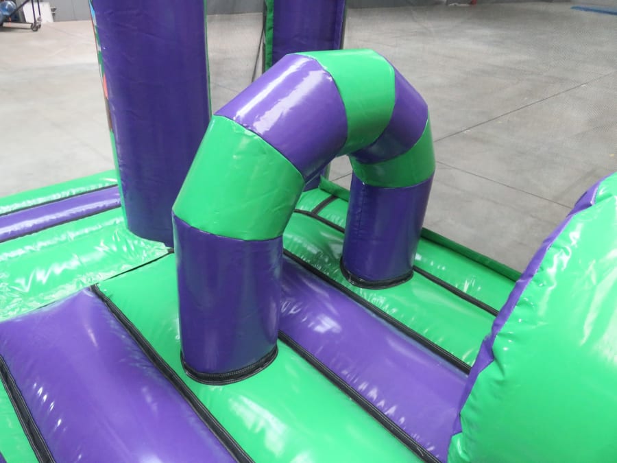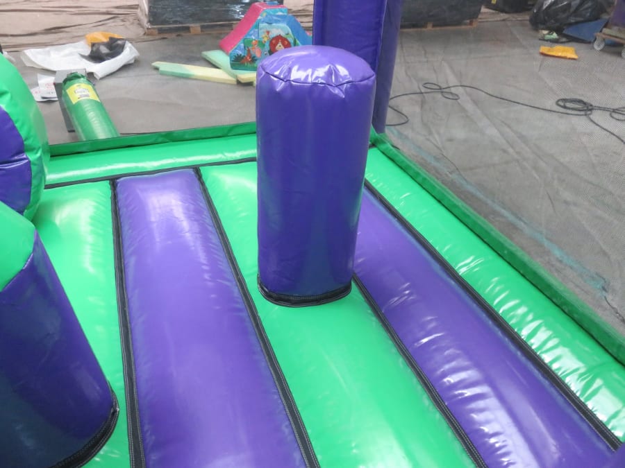 💚 The vibrant green and purple colour scheme, combined with delightful dinosaur artwork, creates a visually appealing and engaging environment that will capture the imagination of children. The inflatable also includes pop-up features for added fun and surprises! 🎈