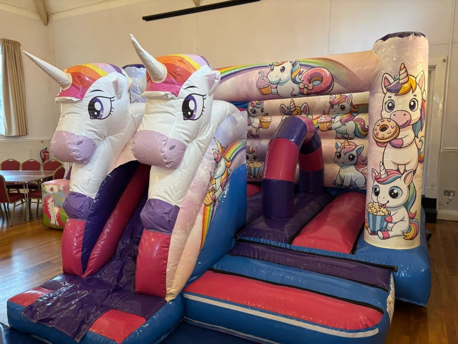 Don't miss the chance to bring the magic of the mythical creatures to your event with our unicorn themed bouncy castle hire. Contact us now to secure your booking and make your child's party an unforgettable journey through time!