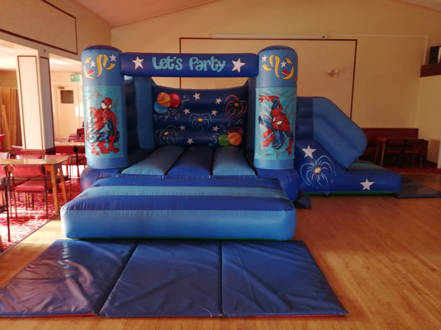 As with all of our indoor bouncy castle and slide combo hires, we provide matting to cover the entrance / exits of the inflatable, sandbags and an electrical fan / blower.