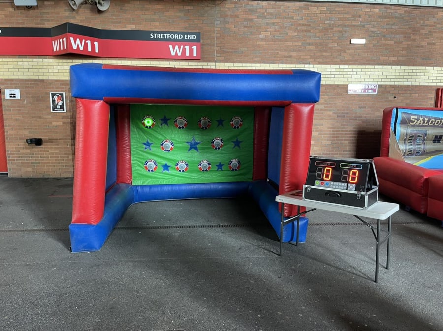 This particular inflatable is an inflatable structure similar to our penalty shoot-out. On the back wall of this inflatable is a material sheet which contains the IPS (Interactive Play System) lights.