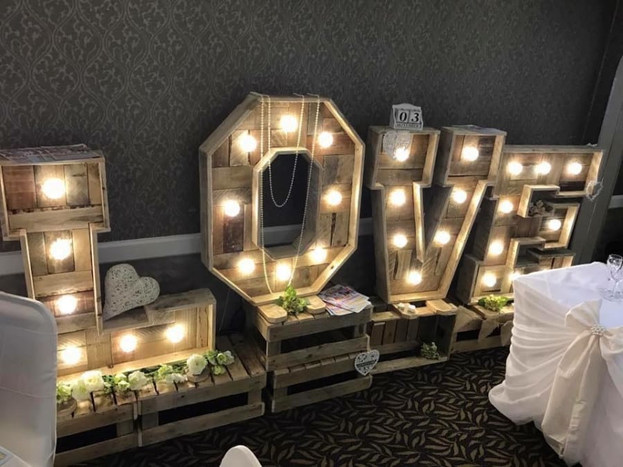 Perfect items to decorate your wedding reception venue in the North-West region. These items are hired together as a package for an incredible price of just £275. Expertly created by a local North-West carpenter and PAT tested to ensure that all electrical equipment is safe to use.