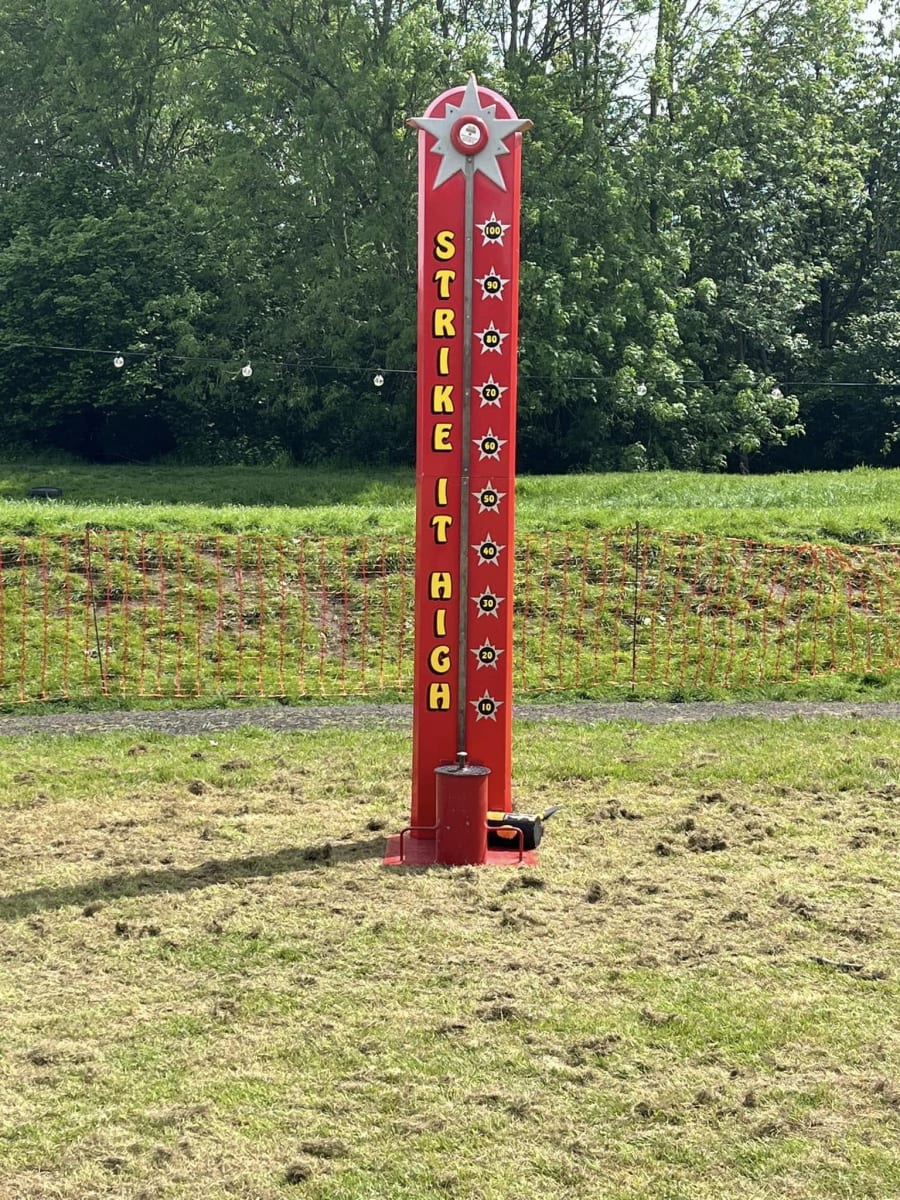 The ultimate game for testing your strength! Just like the popular fairground attraction. Roll on up and test your strength on our fantastic 'High Striker'. Simply grab your mallet and hit the platform as hard as you can possibly can and watch the indicator rise and hopefully strike the bell at the top to confirm you are the strongest!